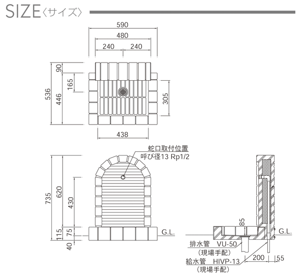 立水栓セット 水栓柱 プラスタータイプ 蛇口1口 角型パン付き1セット (蛇口別売) ガーデンシンク 4色から選択